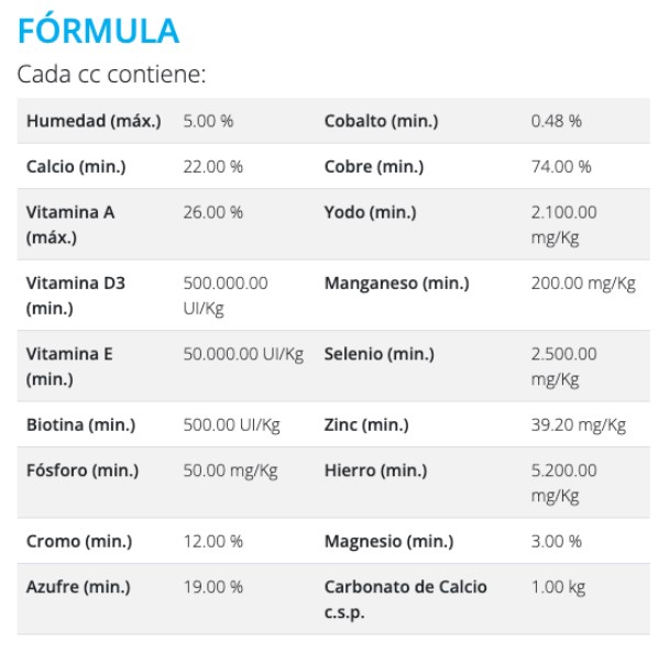 60 a 100 gramos por animal/día, ó 7 gramos por cada litro de leche producida.